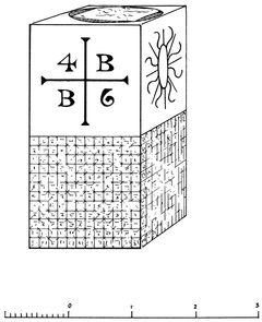 Ele representa a extensão da Vontade. A Vontade é a Díada (veja-se a seção sobre a Baqueta); 2 x 2 = 4. Portanto o altar é quadrangular, e também seus dez quadrados mostram o 4. 10 = 1 + 2 + 3 + 4. ↩︎