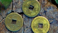 1. Tu obterás 6 moedas chinesas. Cinco devem ser de um metal e a sexta de outro.