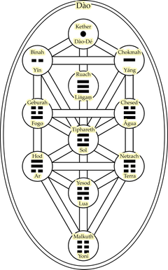 Os chineses, ao perceber que o Dào (neste contexto o chamaram de Tàijí) é tão puramente Nada que deve ser Algo, ou pelo menos somente capaz de apreensão simbolizando-o como Algo, tomaram um par de opostos original e chamaram a eles – simbolizados por simples linhas – de Yì ou Yáo. Estas linhas são chamadas, respectivamente, de Yáng e de Yīn; o Yáng sendo uma linha contínua (⚊) e o Yīn uma linha dividida (⚋). Estes correspondem aos princípios masculino e feminino da Natureza. Eles podem ser chamados de Pai e Mãe. O Dào simplesmente se divide em Dào e Dé, Śiva e Śakti. Agora vemos quão impressionante é a identidade com a teologia hebraica em relação ao Tetragrammaton (tratado profundamente em meu ensaio sobre o Tarô).