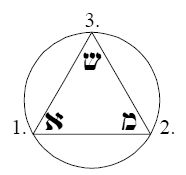 Agora suas letras também exemplificam a Trindade, pois são as iniciais de três palavras hebraicas, cujos Nomes de suas Personificações são, a saber: