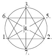 Produzindo os Caminhos segundo os quais as Forças da Arvore (veja o Segundo Símbolo) se encontram em quatro, descobrimos em sua leitura 1+4=5, 2+4=6, 3+4=7. E desta forma é revelado o Segundo Triângulo do Hexagrama da Criação10.