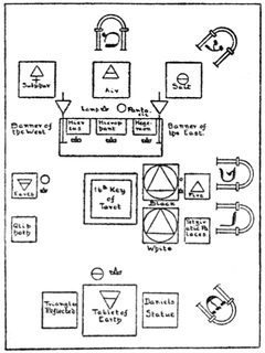 Após isso, o Hierofante explica a Cruz do Calvário de dez quadrados: “A Cruz do Calvário de dez quadrados refere-se às dez Sephiroth em disposição equilibrada; diante das quais o informe e o vazio retrocedem. É também a forma aberta do cubo duplo, e do Altar do Incenso”. E a décima-sexta chave do Tarô: