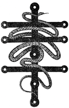 “Esta é a Serpente Nehushtan, que Moisés fez. ‘E ele a colocou sobre um Poste[1]’ – isto é, ele a enrolou ao redor do pilar do meio das Sephiroth, porque ele é o reconciliador entre os fogos de Geburah (Serafins, serpentes de fogo) ou Severidade, e as Águas de Chesed ou Misericórdia. Esta serpente é também um símbolo de Cristo o Reconciliador, também é conhecida como Nogah entre as Conchas, e a Serpente Celestial da Sabedoria. ‘Mas a Serpente da Tentação era a Serpente da Árvore do Conhecimento do Bem e do Mal, e não a Serpente da Árvore da Vida’.”