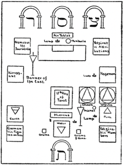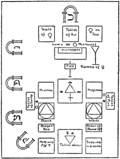 Então são mostrados os Símbolos Alquímicos do Enxofre e do Sal na Árvore da Vida. Após isso, o Hiereus explica o diagrama da Trindade operando através das Sephiroth; e o Hegemon o dos sete palácios Yetziráticos[4] contendo as dez Sephiroth; e as Qliphoth[5] com seus doze príncipes, que são os chefes do Mal dos doze meses do ano. Então o Hierofante confere ao Practicus o título de “Senhor do Vigésimo-Sétimo Caminho” e a terceira parte do Ritual termina.