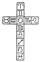 “A Cruz do Calvário de doze quadrados representa adequadamente o Zodíaco; que abraça as Águas de Nu, como os antigos egípcios chamavam os Céus, as águas que estão acima do Firmamento. Também alude ao Eterno Rio do Éden, dividido em quatro cabeceiras, que encontram sua correlação nas quatro triplicidades do Zodíaco”.