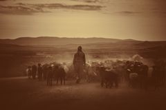 “Ao encarar as profundezas do azul, vi alvorecer imediatamente acima de mim um grande círculo; então, de repente, quando olhei para longe de seu centro, deslizou em minha direção com velocidade intolerável a forma de um pastor; trêmulo e sem saber o que dizer, com voz vacilante, perguntei: ‘Por que vos apressais?’ Então veio a resposta: 'Há urgência!’ Então uma grande escuridão fechou meus olhos, e um horror de corrupção me envolveu, e tudo se derreteu no crepúsculo e ficou envolto na mais extrema escuridão. E da escuridão surgiu um homem vestido de azul, cuja pele era da cor de safira, e em torno dele brilhava uma luz de fósforo, e em sua mão ele segurava uma espada.