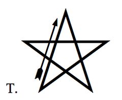vii. Virando-se para o Leste, faça um pentagrama (o da Terra) com a arma adequada (geralmente a Baqueta). Diga (isto é, vibre) IHVH. (Pronuncie Ye-ho-wau.)